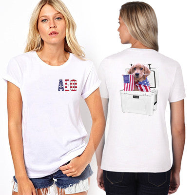 Sorority Patriotic Puppy Design Printed T-Shirt