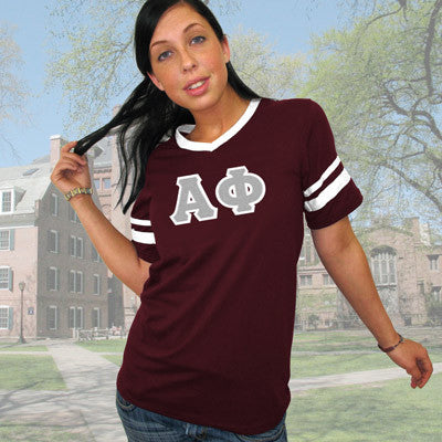 Alpha Phi V-Neck Jersey with Striped Sleeves
