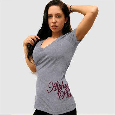 Greek 'I Love Alpha Phi' Custom Printed Sorority V-Neck Tee