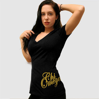 Greek 'I Love Chi Omega' Custom Printed Sorority V-Neck Tee