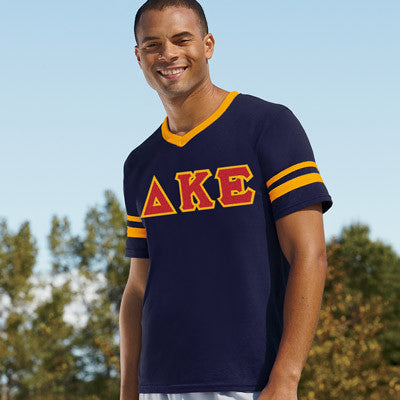 Delta Kappa Epsilon V-Neck Jersey with Striped Sleeves