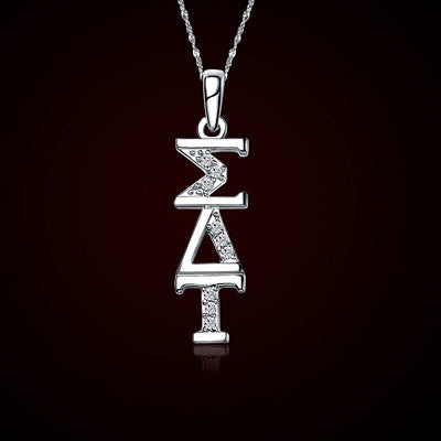 Sigma Delta Tau Vertical Lavalier w/ Stones
