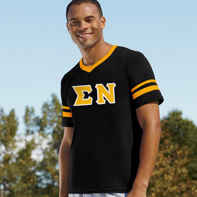 Sigma Nu V-Neck Jersey with Striped Sleeves