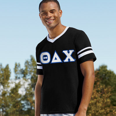 Theta Delta Chi V-Neck Jersey with Striped Sleeves