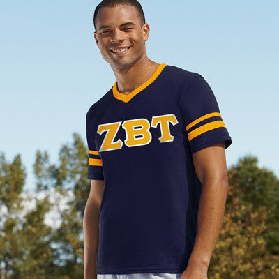 Zeta Beta Tau V-Neck Jersey with Striped Sleeves