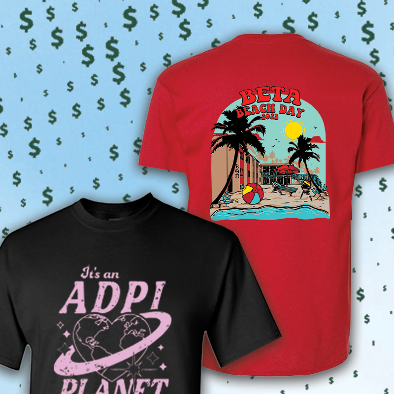 Bundle tees, sweatshirts, and accessories for rush, formals, and retreats, save with group pricing.