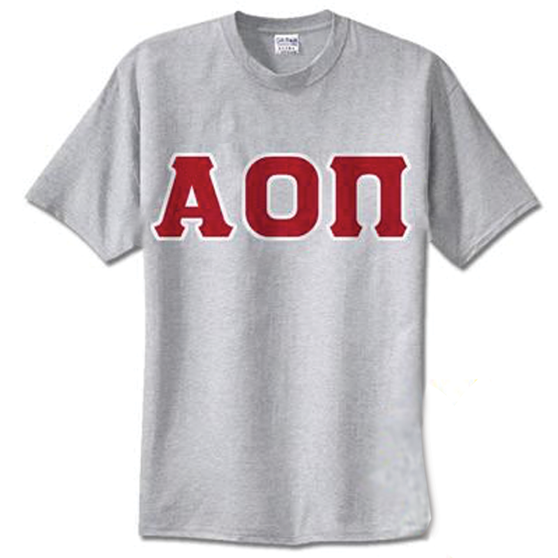 T-Shirt will come with sewn-on twill Greek letters for Alpha Omicron Pi. We have selected your letter color / border color (pictured) for you in order to offer you these great savings.