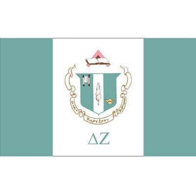 This Sorority flag banner is made specifically for Delta Zeta Sorority. Banner comes as shown and can also be used as a flag. There are 2 grommeted holes on the left side to hang the banner as a flag. This banner is perfect for your table at recruitment or can be used as decoration in any Fraternity house or dorm room. Banner is made of nylon and measures: 34-inch in height x 62-inch in width. Rush service is available for 15% of the total.