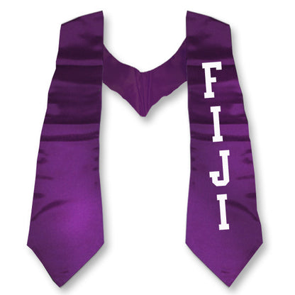 This graduation stole is customized for Phi Gamma Delta (FIJI) Fraternity. This is a PRINTED version of our Graduation stoles and does NOT have twill sewn-on letters or Embroidery. First select the stole color, then select the font you would like used for the Greek symbols on the left side of the stole then choose your print color.