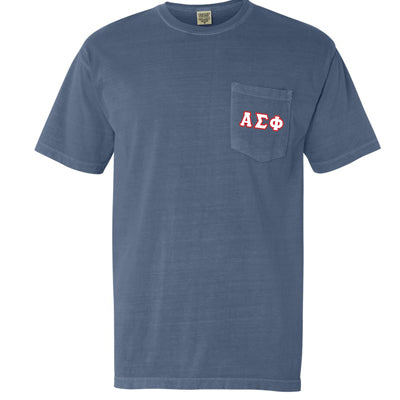 Comfort Colors apparel are the emblem of true comfort! Made with super soft fabric in an assortment of various colors! This custom Fraternity t-shirt comes with your Greek organization letters in 2-inch print on the left chest pocket OR your Greek organization crest with Greek letters arched above, printed on the left chest pocket. Select your Fraternity letters, we will print using either the Greek symbols or written out depending on which style you choose. This Custom Colors t-shirt with a pocket is unisex/men's sized.