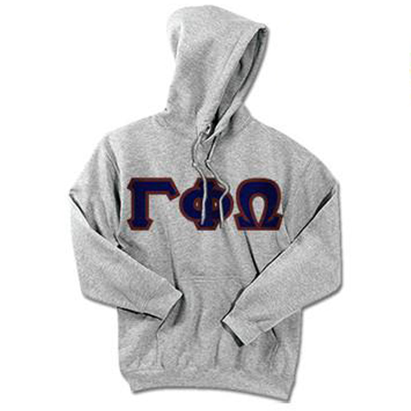 Sweatshirt will come with sewn-on twill Greek letters for Gamma Phi Omega. We have selected your letter color / border color (pictured) for you in order to offer you these great savings.