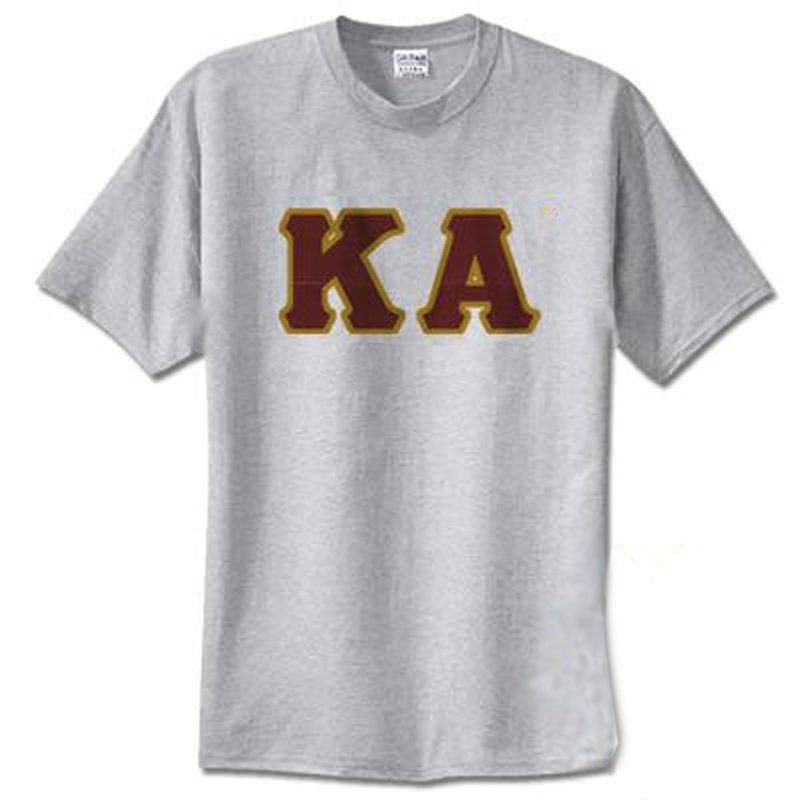 T-Shirt will come with sewn-on twill Greek letters for Kappa Alpha. We have selected your letter color / border color (pictured) for you in order to offer you these great savings.
