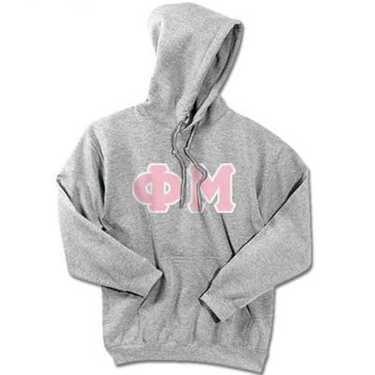 This Standards Hooded Sweatshirt for Phi Mu has two options, you can choose to have this sweatshirt come in Sport Grey or in White and then select a size.