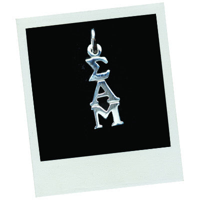 Lavalier with Sigma Alpha Mu letters hanging vertically. Chains must be ordered separately. Due to unforeseen supply issues, this item is only available in sterling silver at this time. Rush service is available for a fee of 20% of total.
