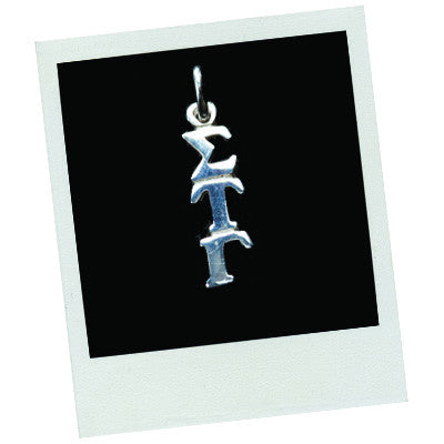 Lavalier with Sigma Tau Gamma letters hanging vertically. Chains must be ordered separately. Due to unforeseen supply issues, this item is only available in sterling silver at this time. Rush service is available for a fee of 20% of total.