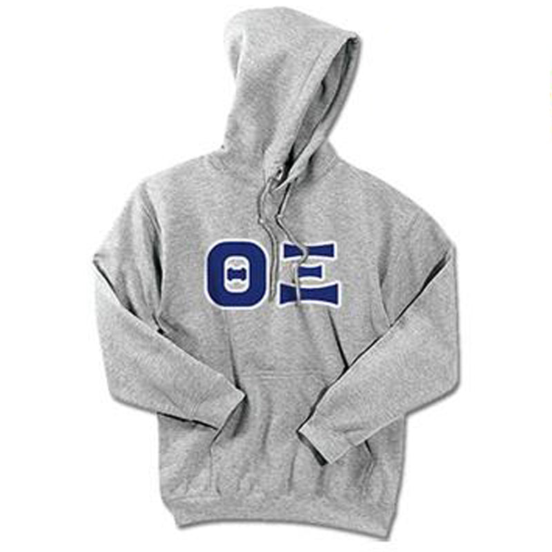Sweatshirt will come with sewn-on twill Greek letters for Theta Xi. We have selected your letter color / border color (pictured) for you in order to offer you these great savings.