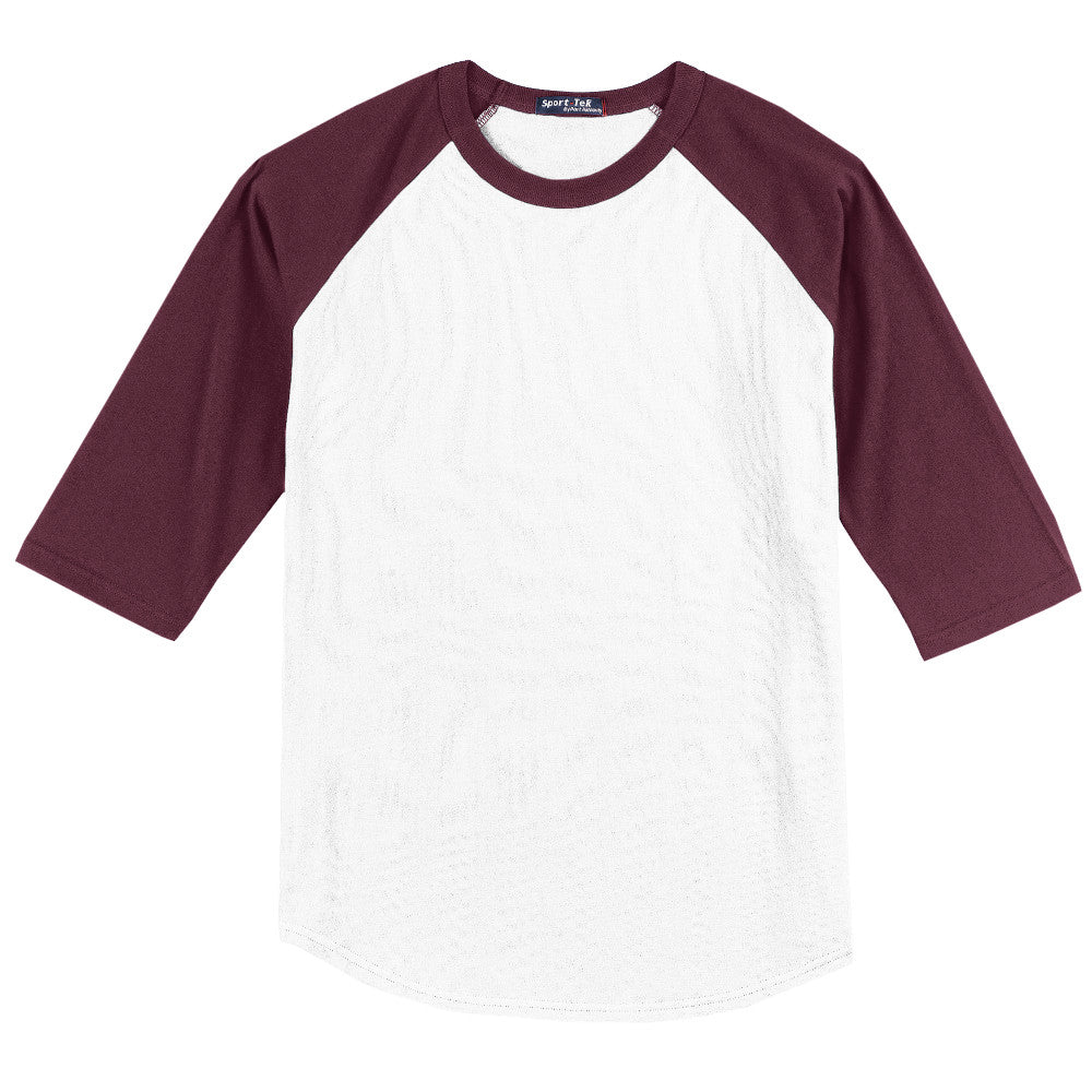 Raglan Shirt Features: Sport-Tek brand; 5.1-ounce; 100% ring spun combed cotton; colorblock sleeves and rib knit crewneck; 3/4 raglan sleeves; available in XS-6XL; unisex/men's sized.