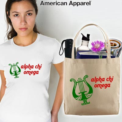 Alpha Chi Omega Mascot Printed Tee and Tote Package comes as shown. Gildan Fine Jersey Short Sleeve Tee will be used as the shirt. You pick the shirt color, the size, the mascot color and then the text color. The Alpha Chi Omega mascot shown in the picture will be used both on the shirt and the tote.