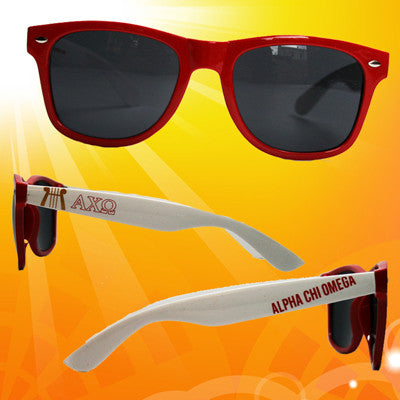 Gear up for Spring Break and the Summer with these brand new Alpha Chi Omega Sorority Sunglasses. Sunglasses come as shown.