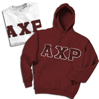 Alpha Chi Rho hoody / t-shirt pack comes with 4 inch twill Greek letters sewn on the front of both garments. Hoody: Gildan 7.75oz unisex/men's sized hooded sweatshirt, 50% cotton and 50% polyester. T-Shirt: Gildan 5.3oz unisex/men's sized t-shirt, 100% cotton, preshrunk. Rush service is available for a fee of 15% of the total price, this service can be selected during checkout.