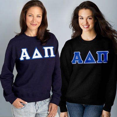 Buy 2 9-ounce crewneck Alpha Delta Pi Gildan sweatshirts and save money! Crewneck sweatshirts will come with 4-inch Alpha Delta Pi twill sewn-on letters. Sweatshirts are unisex/men's sized.