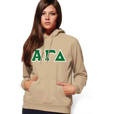 Our best selling sweatshirt since 1989 not only features great quality but now it has a great Low Price! Gildan unisex/men's sized hooded sweatshirt comes with 4-inch twill sewn-on letters across the front for Alpha Gamma Delta Sorority.