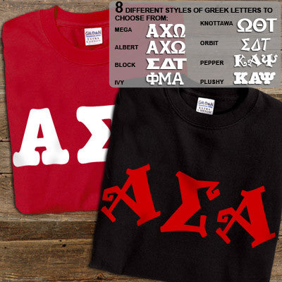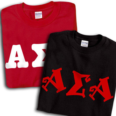 Get 2 Alpha Sigma Alpha printed t-shirts for almost the same price as getting one! 8 fonts and multiple colors to choose from. Gildan 5.3oz. 100% cotton, preshrunk t-shirts. Double-needle stitching throughout, seamless topstitched collar, taped neck and shoulders. Ash color is 99% cotton, 1% polyester, Sports Grey color is 90% cotton, 10% polyester, Heather Cardinal, Dark Heather and Heather Indigo are 50% cotton and 50% polyester. Rush service is available for 20% of the total price, this option is available during checkout. This is a PRINTED item. This item does NOT have sewn on twill letters. Any questions, please contact customer service.