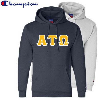 Get 2 of our best selling Champion Sweatshirts for a special discounted price. Sweatshirts can both be customized and will come with Alpha Tau Omega Greek letters sewn on the front in 4-inch twill. Champion Unisex/Men's Sized 9-ounce hooded fleece sweatshirt. 50% cotton, 50% polyester; Lycra enhanced trim; two-ply hood; front pouch with bartacks for durability; ribbed waistband; C logo at left cuff. Rush service is available for 20% of the total price, this service can be selected during checkout.