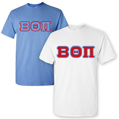 Get 2 T-shirts with 4-inch twill Beta Theta Pi sewn-on letters on the front.