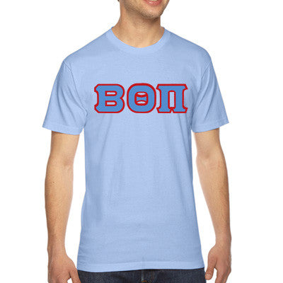 Customize this Fraternity Jersey Tee for Beta Theta Pi with your choice from over 400+ custom twill Greek letter patterns. The jersey knit material makes this one of our softest fraternity shirts, which is perfect for daily wear. The Greek letters are sewn-on and measure 4-inch height.