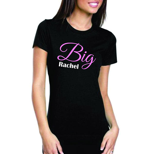 This T-shirt is perfect for representing your Sorority Family. T-shirt is a custom printed item on a garment sized for ladies. Choose a color for Little and a color for the name below.