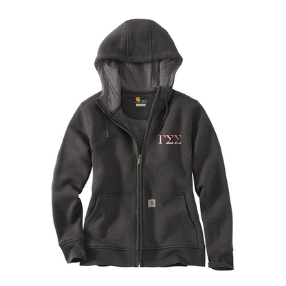 This Greek Carhartt® Hooded Sweatshirt comes with the embroidered design shown. You just pick a Bag Color, Inside Embroidery Color, Outside Embroidery Color, and then choose your Greek letters for your organization.