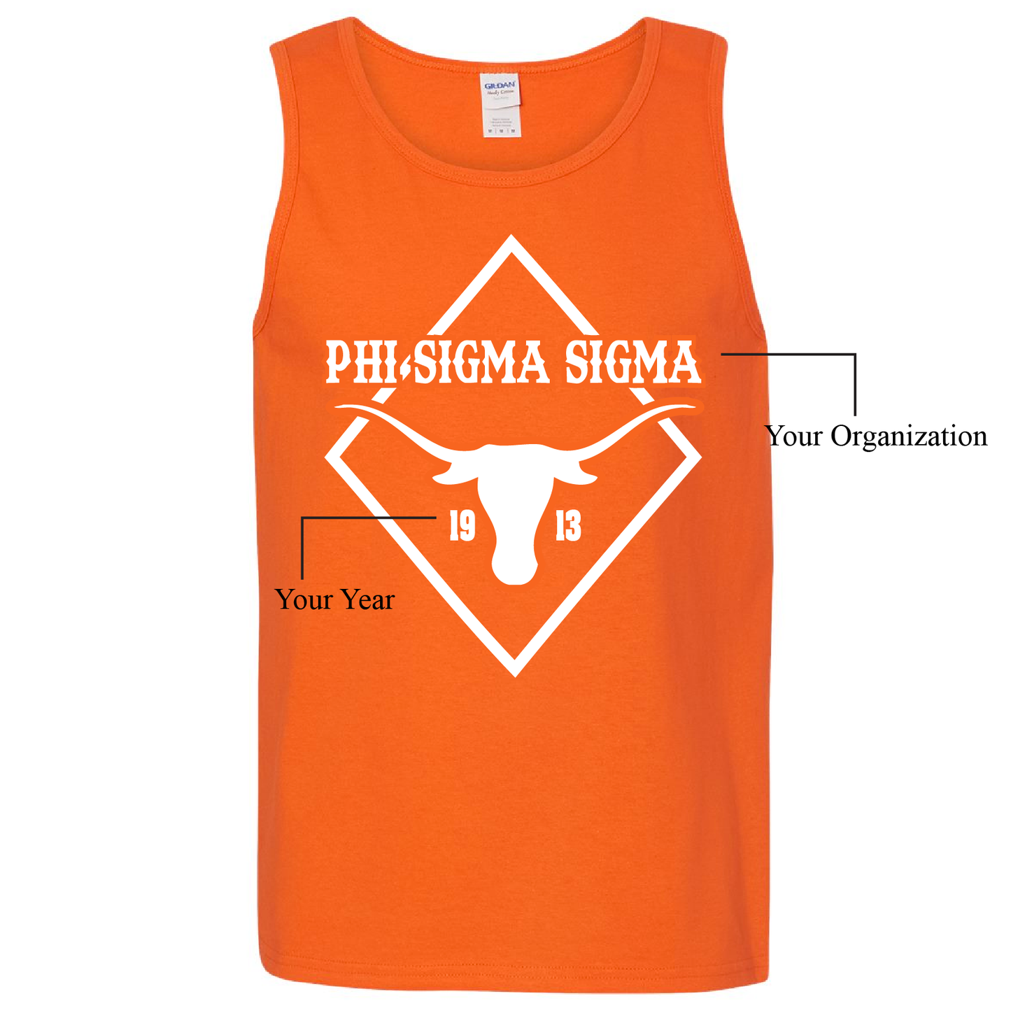 This printed tank comes with your organizations name and date in a diamond with cattle accent.