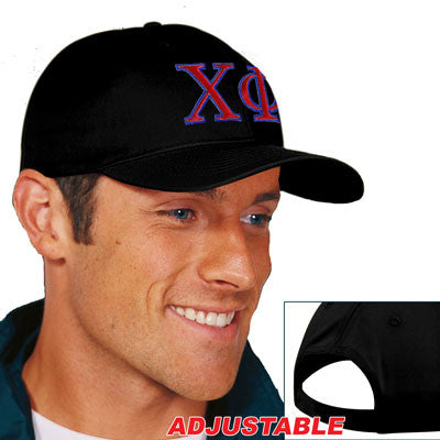 Order your 2-color embroidered Chi Phi Fraternity hat to match your shirt today! Comes in over 14 colors. Each cap comes with your Chi Phi Greek symbols embroidered on the front in two colors. You choose the color of the cap, the letter color and the outline color. One size fits all - adjustable.