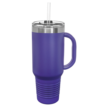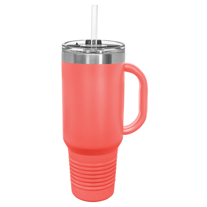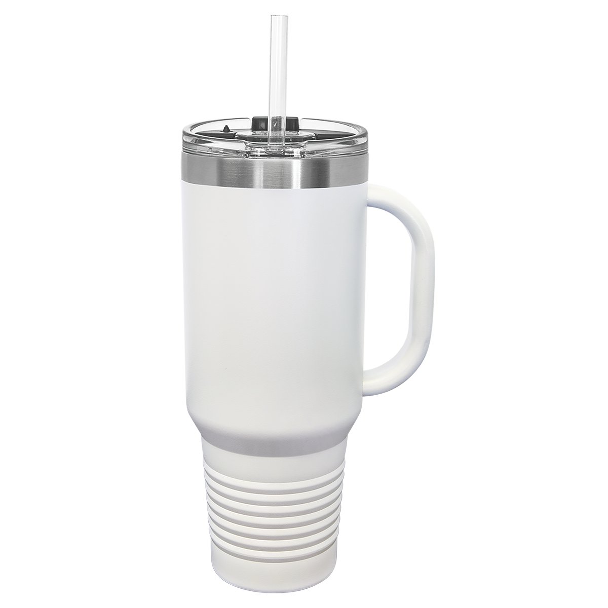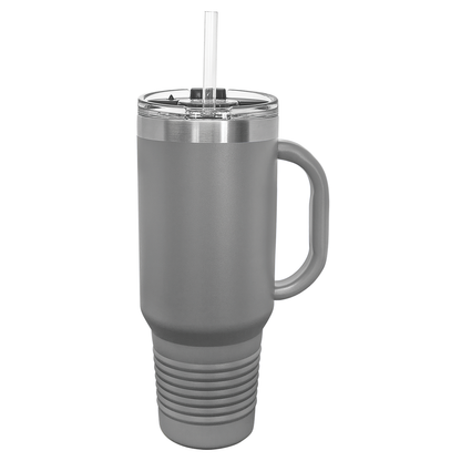 Stay hydrated with this custom 40oz. travel mug featuring a unique Small Heart design. The stainless steel double wall vacuum insulation keeps your drinks at the perfect temperature while the straw and snap lid make it easy to drink on the go. Fits most cup holders and can be personalized with your own text. Perfect for sororities and fraternities. Cheers!