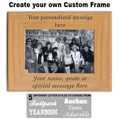 Custom Greek laser engraved 4x6 wooden picture frame can be customized for any organization and with any text! Just fill in the areas below. One text field is for the top and the other is for the bottom. You can also select different fonts for the top and bottom! There is room for 2 lines of text on the top and 2 on the bottom. Each line can contain 25 characters max. Dimensions of frame are 5 inches x 7 inches, it holds a 4x6 picture, walnut wood with an easel back and glass window front. Frames can hang or stand, horizontally. Rush service is available for 15% of the total price, this service can be selected during checkout.