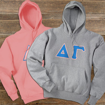 Delta Gamma hoodies come with 4 inch twill Greek letters sewn on the front. Gildan 7.75oz unisex/men's sized hooded sweatshirts, 2 for this low price! 50% cotton and 50% polyester. Rush service is available for a fee of 15% of the total price, this service can be selected during checkout.