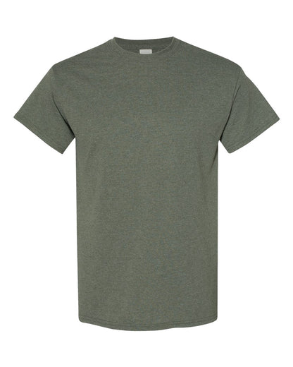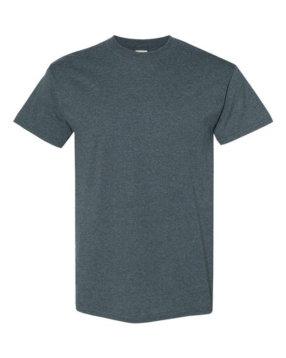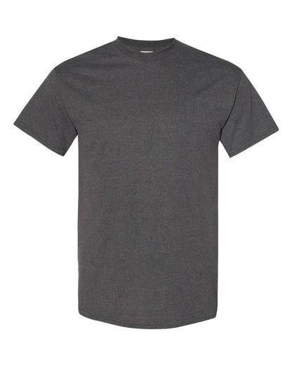 Shirt Features: Gildan 5.3oz unisex/men's sizing T-shirt; 100% preshrunk cotton; double-needle stitching throughout; seamless topstitched collar; taped neck and shoulders; Ash is 99% cotton and 1% polyester; Sport Grey is 90% cotton and 10% polyester; Heather Cardinal, Dark Heather and Heather Indigo are 50% cotton and 50% polyester. Rush service is available for a fee of 20% of total.