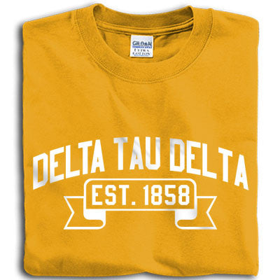 Delta Tau Delta Vintage Football Printed T-Shirt comes as shown but you can select the date, shirt color and print color. We allow you to input your date in case you would rather the chapter or colony established date instead of your national established date.
