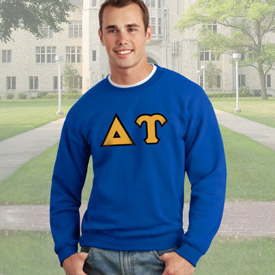 This Gildan crewneck comes with 4-inch twill sewn-on Delta Upsilon Greek symbols on the front.