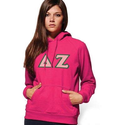 Our best selling sweatshirt since 1989 not only features great quality but now it has a great Low Price! Gildan unisex/men's sized hooded sweatshirt comes with 4-inch twill sewn-on letters across the front for Delta Zeta Sorority.