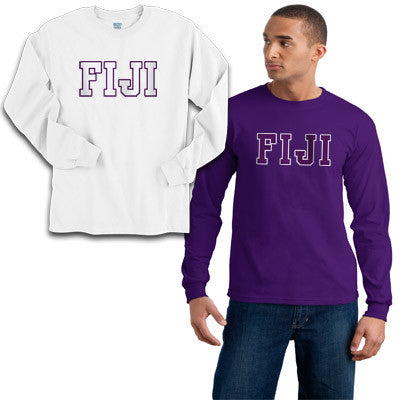 This FIJI longsleeve package comes with two longsleeve t-shirts that have FIJI Symbols in 4-inch twill sewn-on letters on the front. These shirts are unisex/men's sized.