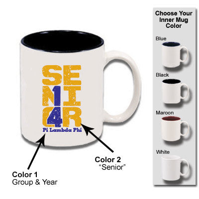 Perfect for the Graduating Fraternity Brother, this coffee mug comes with the design shown. Just select a color for the inside of the mug, then write out your Fraternity name and supply a year to use. Color 1 will be used for your Fraternity name as well as the year and Color 2 will be used for Senior. Mug holds 11-ounces and is ceramic. Rush service is available.