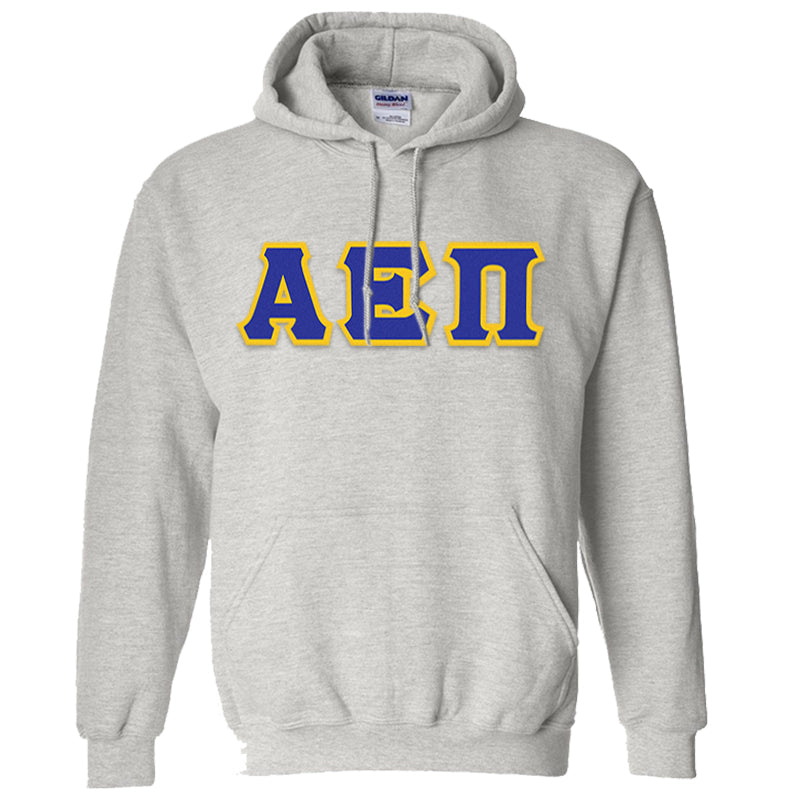 Our best selling sweatshirt since 1989 not only features great quality but now it has a great Low Price! Gildan unisex/men's sizing hooded sweatshirt comes with 4-inch twill sewn-on letters across the front. Please write out the full Fraternity name below - we will only use the Greek Symbols on the hoody.
