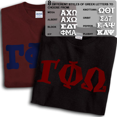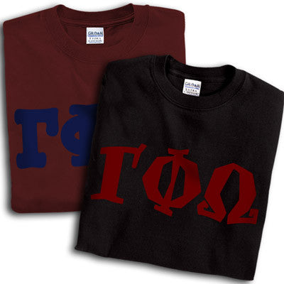 Get 2 Gamma Phi Omega printed t-shirts for almost the same price as getting one! 8 fonts and multiple colors to choose from. Gildan 5.3oz. 100% cotton, preshrunk t-shirts. Double-needle stitching throughout, seamless topstitched collar, taped neck and shoulders. Ash color is 99% cotton, 1% polyester, Sports Grey color is 90% cotton, 10% polyester, Heather Cardinal, Dark Heather and Heather Indigo are 50% cotton and 50% polyester. Rush service is available for 15% of the total price, this option is available during checkout. This is a PRINTED item. This item does NOT have sewn on twill letters. Any questions, please contact customer service.