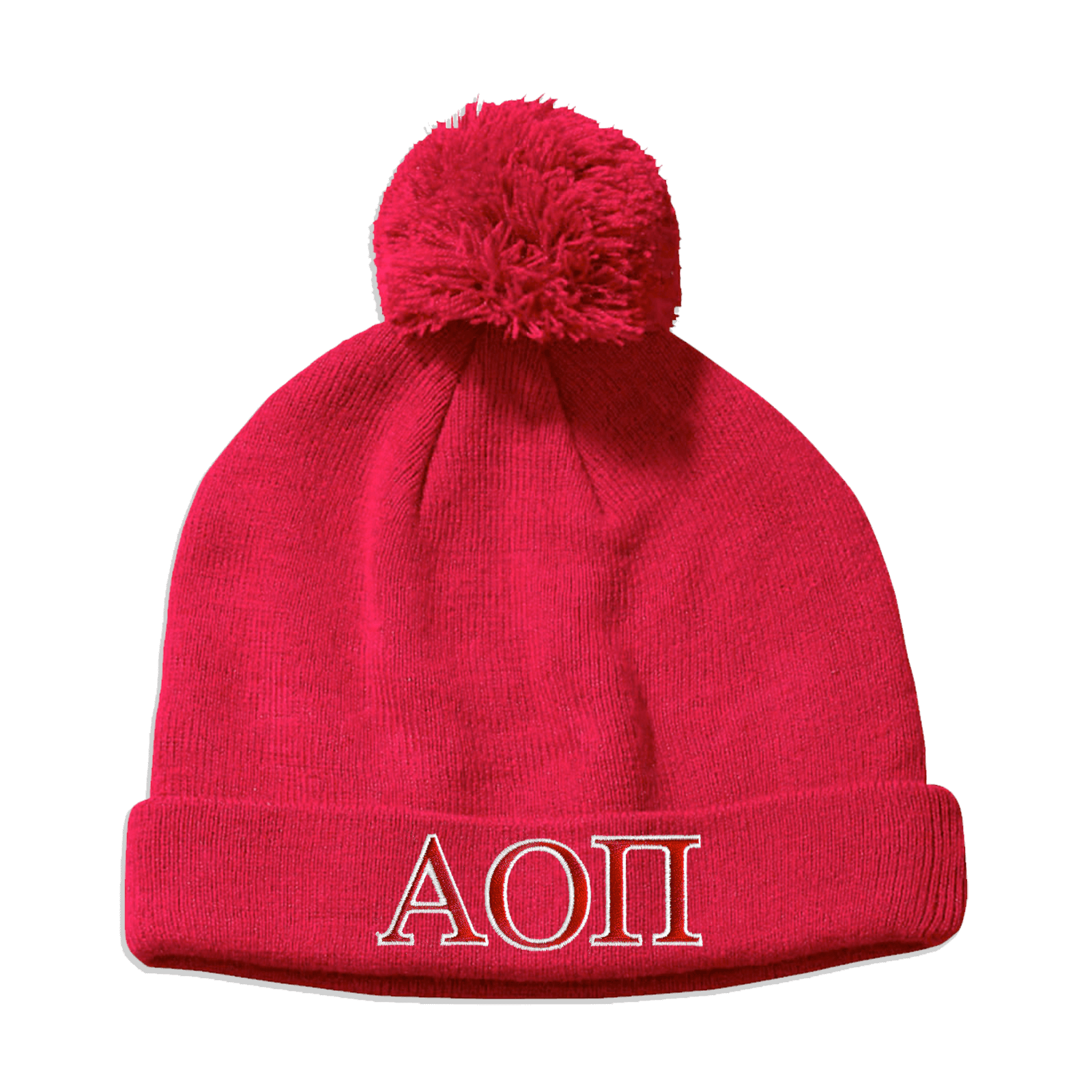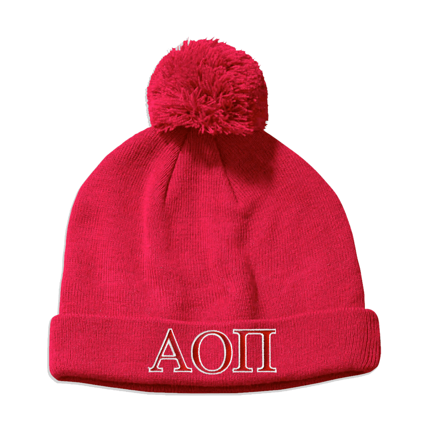With the Fall season just around the corner this Pom Beanie is available just in time for the cool weather! Available only at Something Greek this beanie can be customized for any Fraternity or Sorority. Each beanie comes with your Organizations greek symbols embroidered on the front in 2 colors. Simply choose the color for the beanie, the inside letter color and the outline border color. One size fits all. Please select your organizations Greek letters above - we will only use your Greek Symbols.