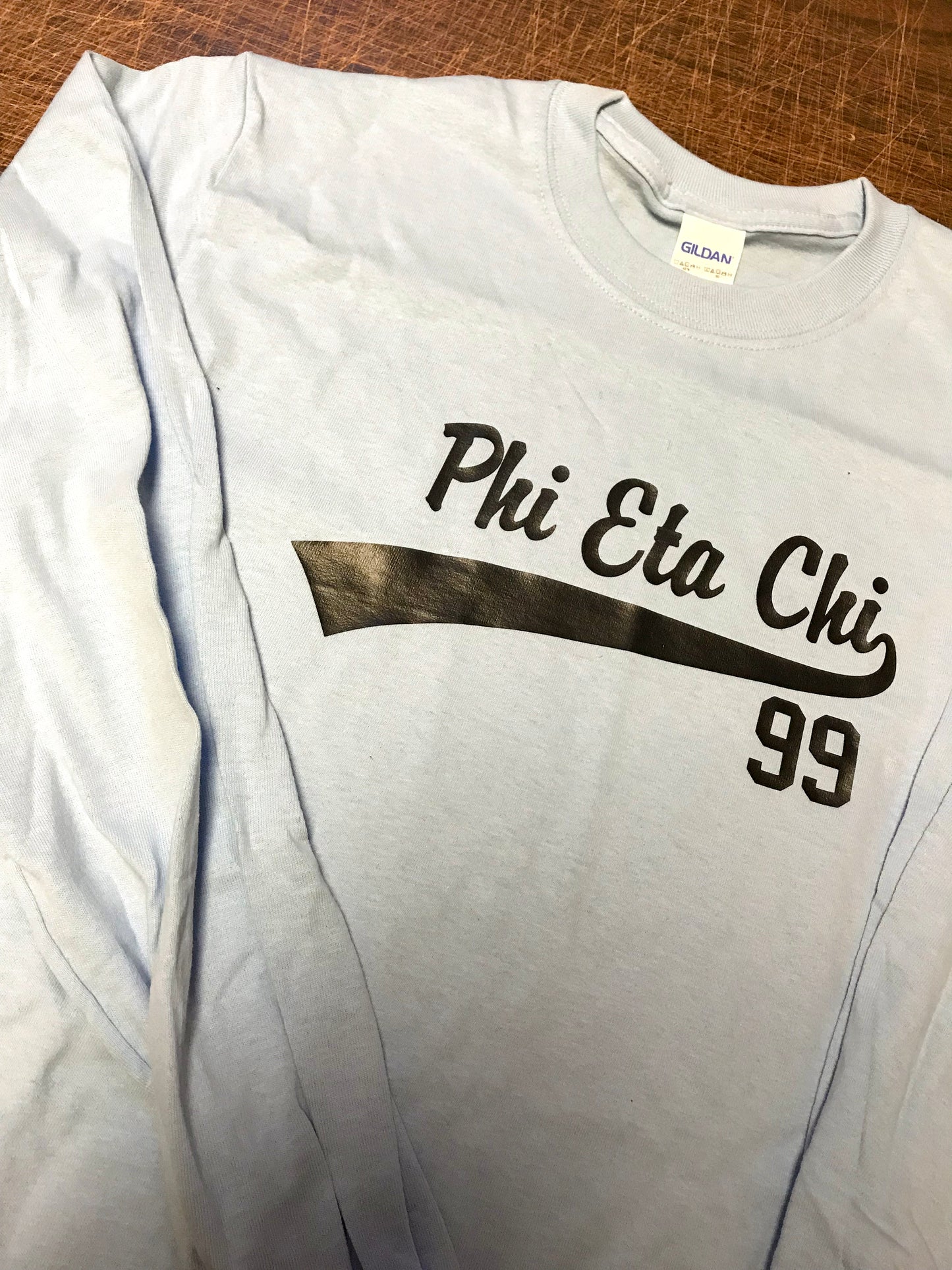 This printed shirt comes with ANY wording spelled out in baseball jersey-looking lettering. The shirt can be made for any fraternity or sorority! Just type *exactly* what you want in the comments section! You can choose the color print that you want to use also. Gildan 100% cotton, 6.1 oz. preshrunk longsleeved tee. Rush service is available for 15% of the total. This option is available during check-out. For bigger sizes - call for colors available. THESE ARE NOT WOMENS' OR FITTED TEES. They are unisex/men's sized longsleeve tees. This is a PRINTED item. This item does NOT have sewn on twill letters. Any questions, please contact customer service.