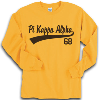 This printed shirt comes with ANY wording spelled out in baseball jersey-looking lettering. The shirt can be made for any fraternity or sorority! Please fill out your organization below as well as two numbers you want to be displayed below the tail. Only two numbers will be used so please only indicate 2 numbers when ordering. You can choose the color print that you want to use also. Gildan 100% cotton, 6.1 oz. preshrunk longsleeved tee. Rush service is available for 15% of the total. This option is available during check-out. For bigger sizes - call for colors available. THESE ARE NOT WOMENS' OR FITTED TEES. They are unisex/men's sized shirts. This is a PRINTED item. This item does NOT have sewn on twill letters. Any questions, please contact customer service.