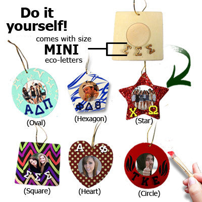 Custom wood Christmas Ornaments that feature your Fraternity or Sorority Greek Symbols. Select which style of ornament you would like, then please select your organizations Greek letters above - we will send you the Greek Symbols with the Ornament you select in the Mini size so they fit on the ornament. Ornament comes disassembled and only requires a little wood glue to attach the letters on the front. Great for Painting or Staining. You can also add a Bottle of Wood Glue for just $1.95 if needed.