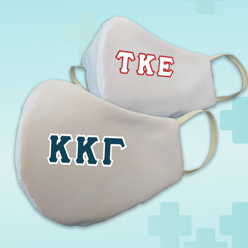 Customize or personalize for your Greek fraternity or sorority organization to share with your brothers or sisters today! This face mask comes with a horizontal, three-inches in length and one-inch in width, printed Greek fraternity or sorority letters on the left panel. Please select the colors of your choice and your fraternity's or sorority's Greek symbols above.